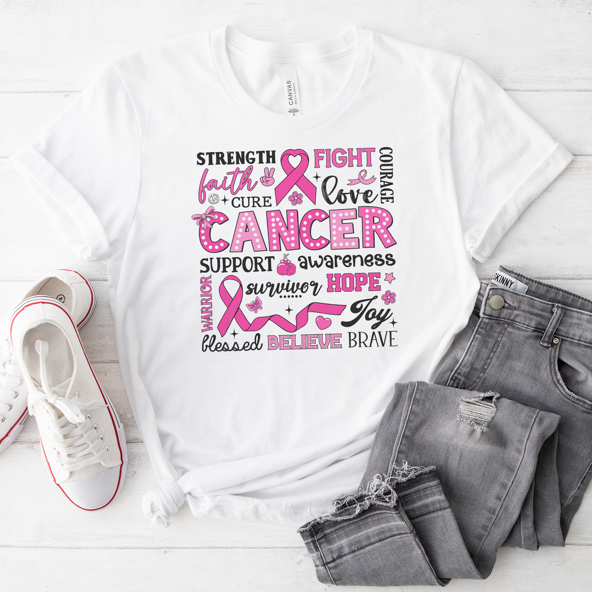 Show your support and raise awareness with our Breast Cancer Awareness Tee! Featuring an uplifting message, this shirt is a powerful reminder of the importance of early detection and the need for support for those impacted by breast cancer. Ideal for events, casual outings, or simply spreading awareness, it’s both stylish and meaningful. Wear it with pride and help us make a difference!